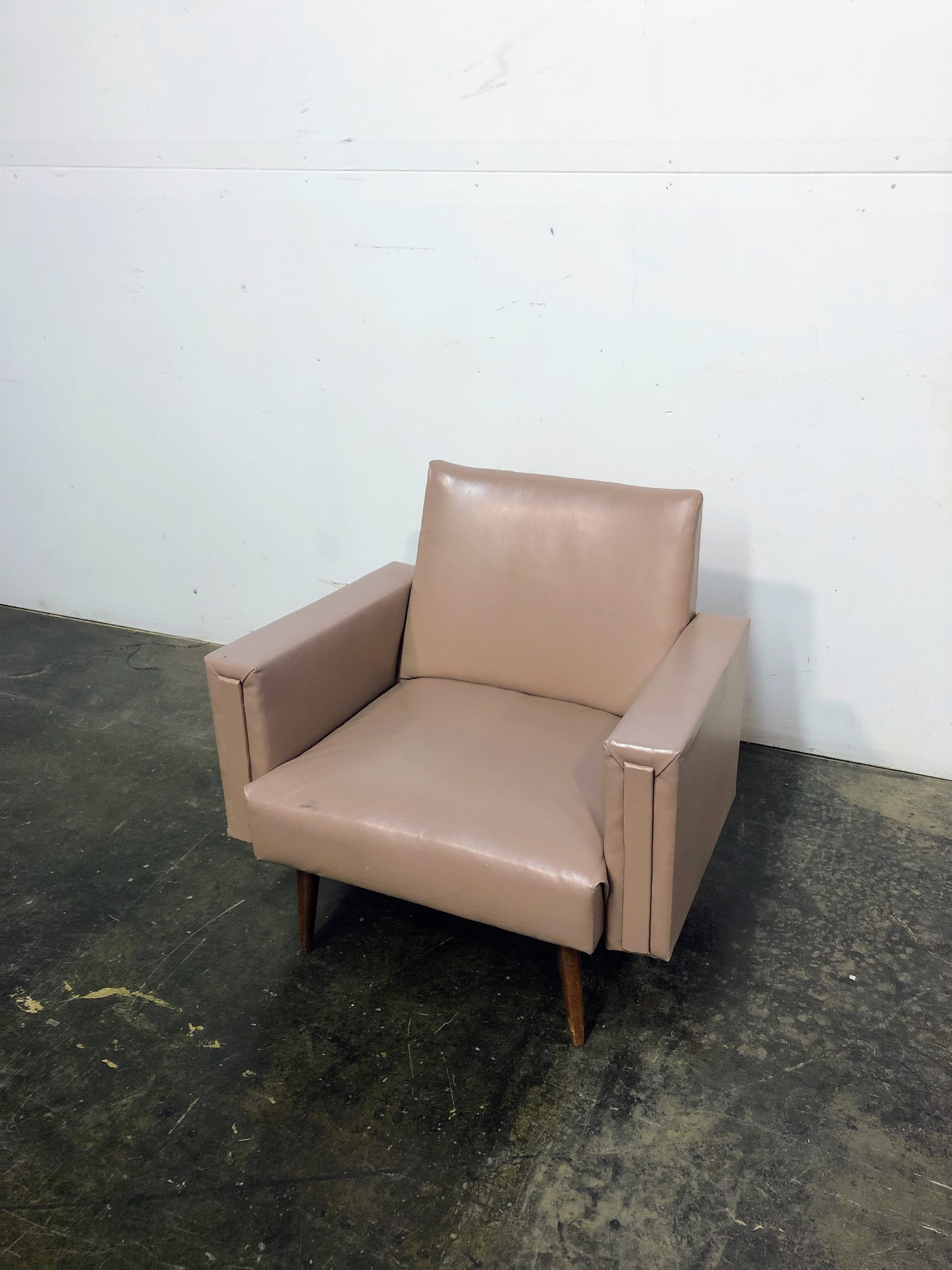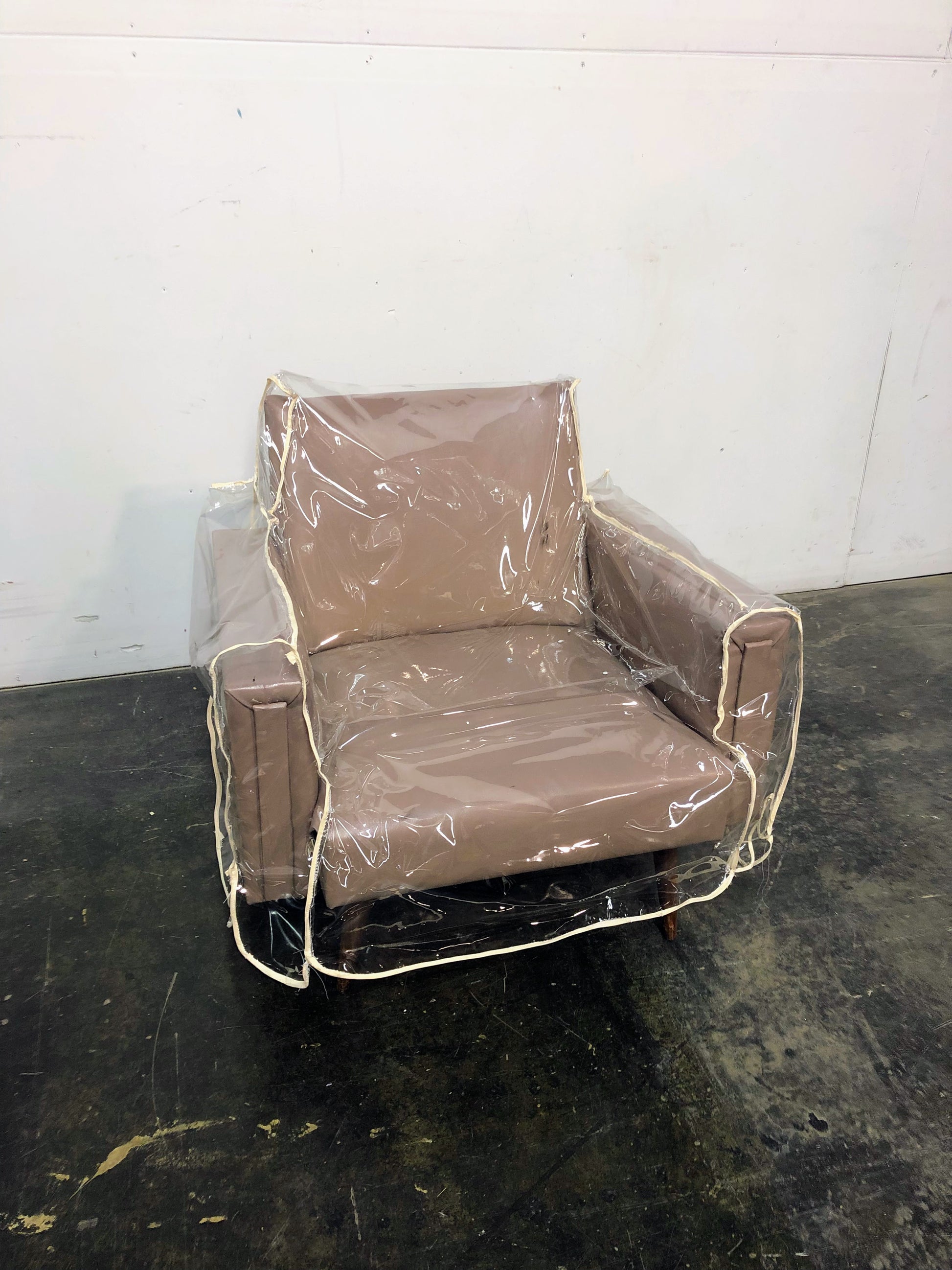 Fauteuil en similicuir rose pâle avec housse en vinyle transparent