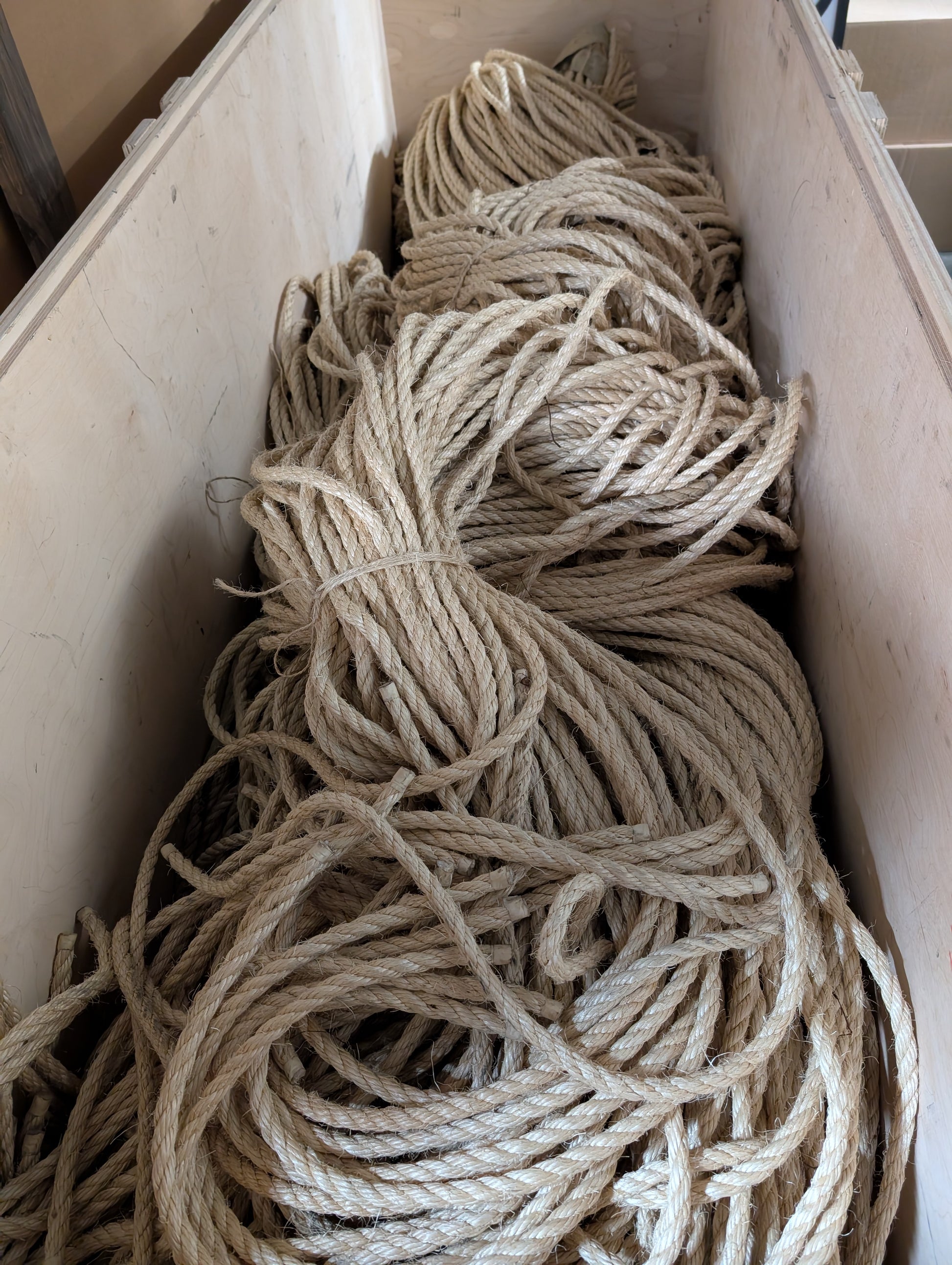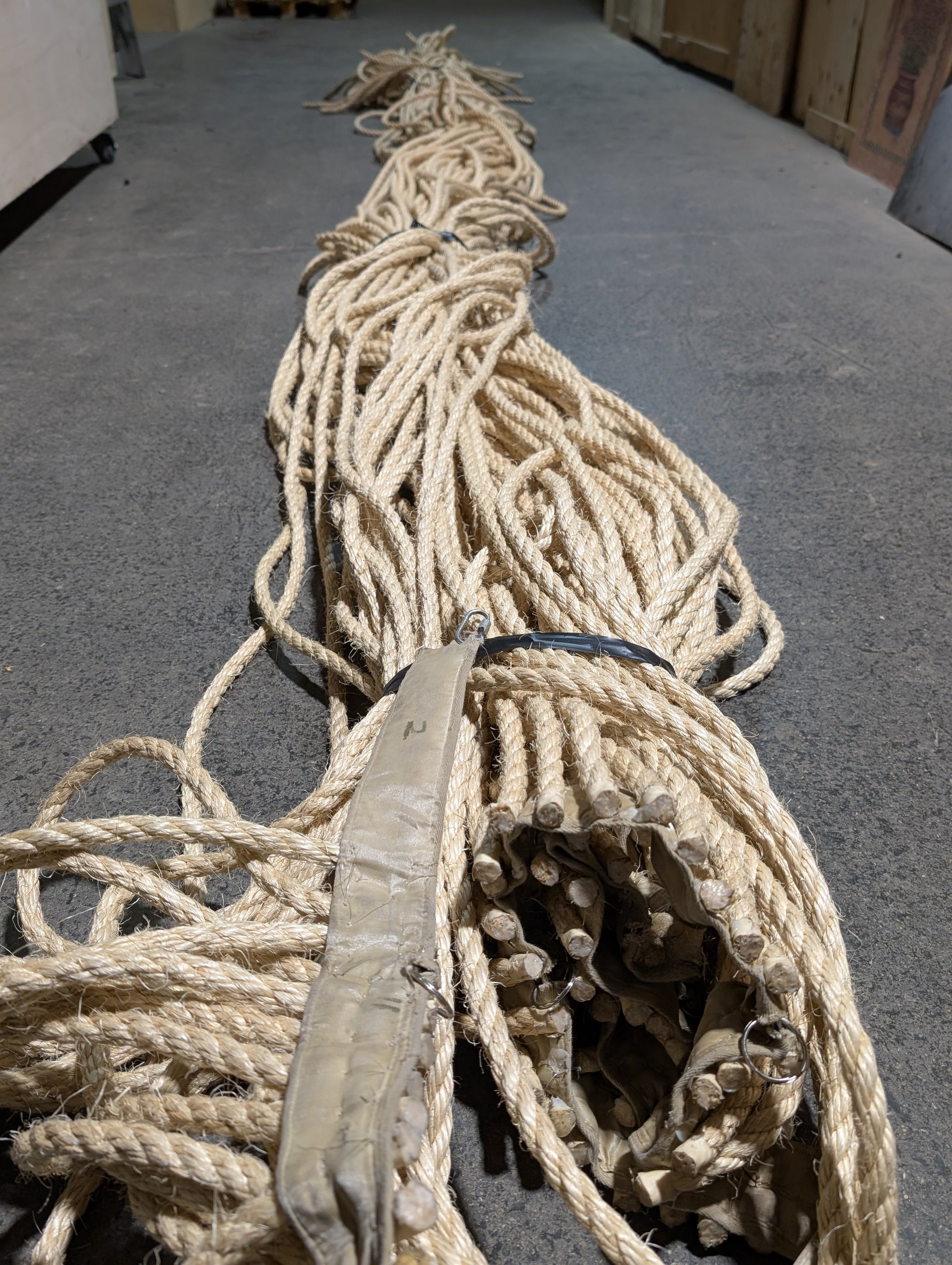 Grands rideaux faits de corde de manille et munis d'anneaux pour l'accrochage
