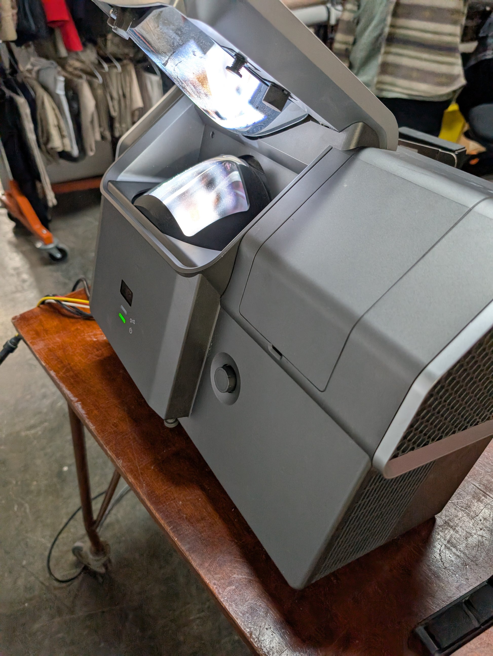 Grand écran servant de tableau interactif, vient avec appareil de projection, haut-parleur, filage et accessoires.